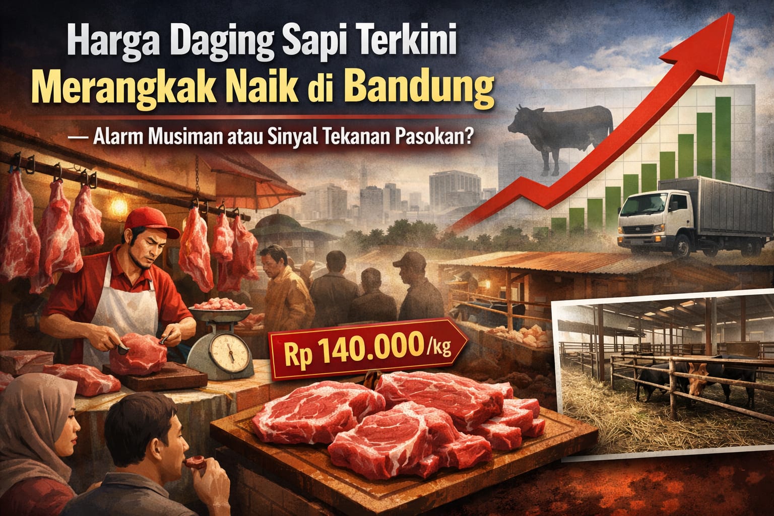Dalam tantangan awal Ramadan 1447 H, harga daging sapi menjadi sorotan utama di pasar tradisional Bandung dan sekitarnya. Berdasarkan data terkini yang dipublikasikan oleh Katadata (19 Februari 2026), harga daging sapi paha belakang di Jawa Barat mencapai sekitar Rp 140.131 per kilogram, mencatat kenaikan tipis sekitar 0,89% dibandingkan hari sebelumnya, sekaligus menunjukkan tren kenaikan yang konsisten sejak beberapa pekan belakangan. (katadata.co.id, Kamis 19 Pebruari 2026) ([Databoks][1])