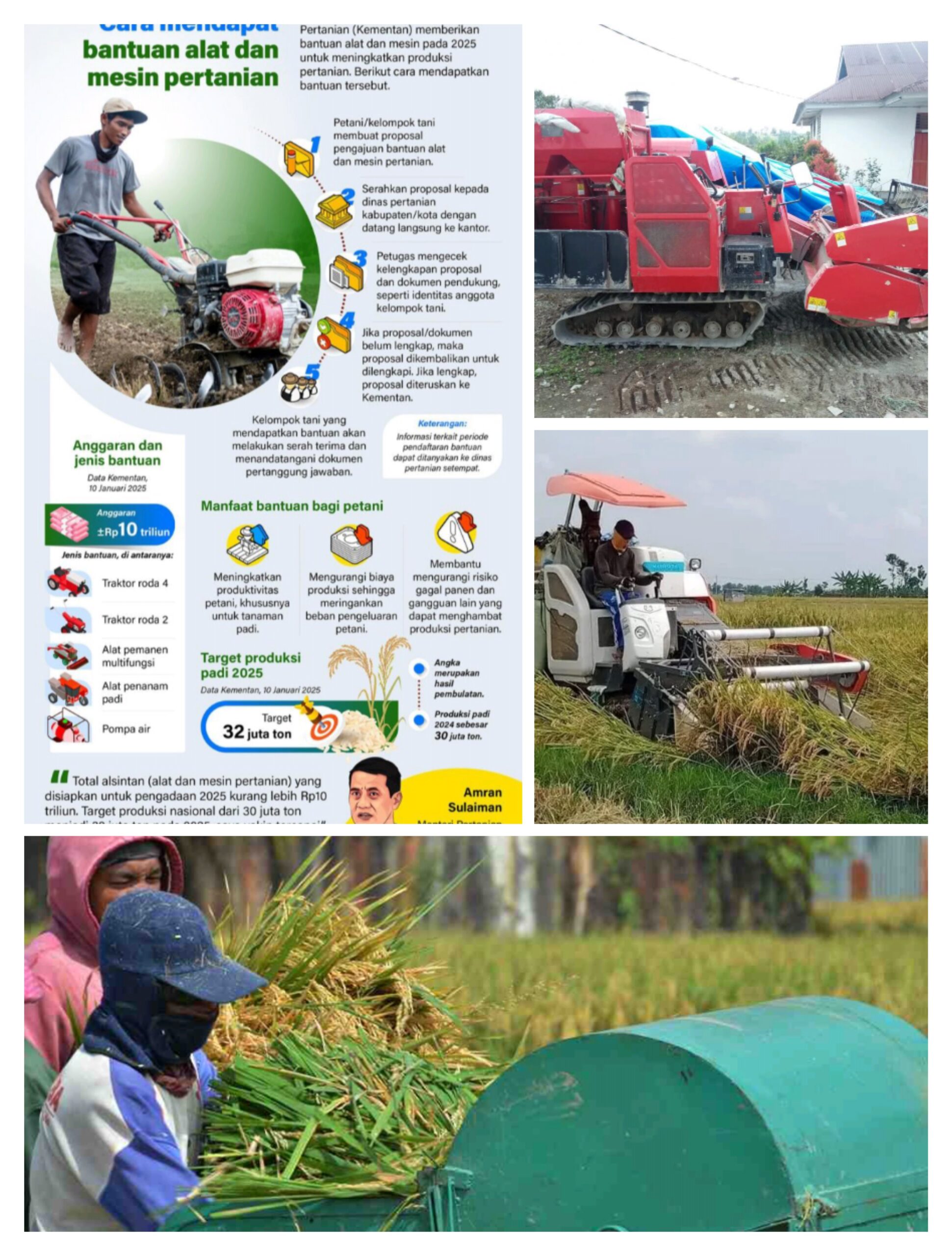 Pemerintah patut diapresiasi atas upaya meningkatkan alokasi alat mesin pertanian (alsintan) modern, seperti combine harvester dan power thresher, untuk menyambut panen raya pasca-Lebaran 2025.
