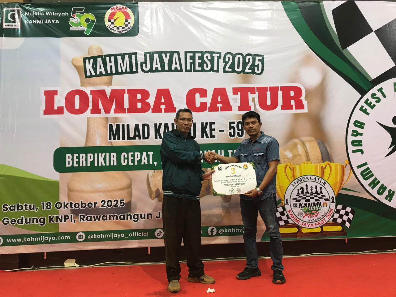 Jakarta, Swararakyat.com — Dalam rangka memperingati Hari Ulang Tahun Korps Alumni Himpunan Mahasiswa Islam (KAHMI) ke-59, Majelis Wilayah KAHMI JAYA menggelar rangkaian kegiatan bertajuk “KAHMI JAYA FEST 2025.” Salah satu kegiatan yang paling menarik perhatian adalah Turnamen Catur Perdana KAHMI JAYA, yang sukses digelar di Aula Gedung KNPI DKI Jakarta, Rawamangun, Jakarta Timur, Sabtu (18/10/2025).