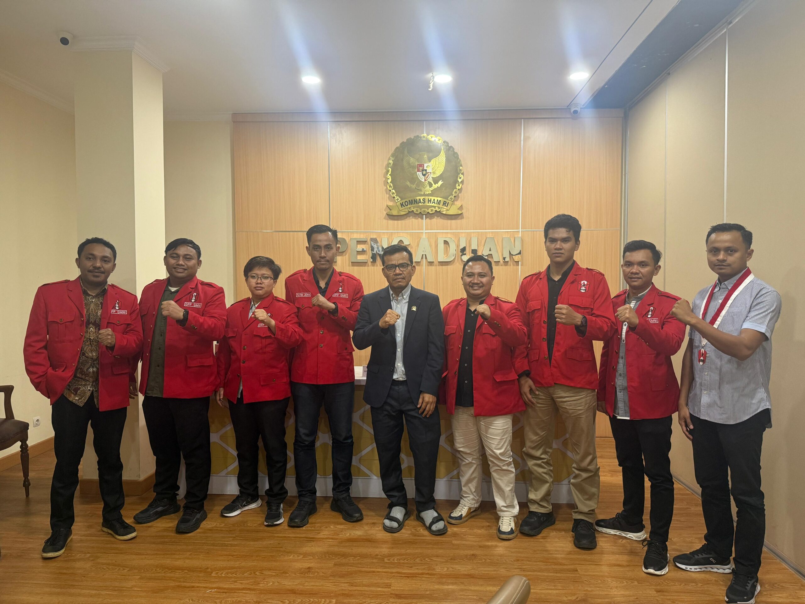 Dipimpin Sekretaris Jenderal Bung Patra Dewa dan Ketua Bidang HAM Bung Wira Dika Orizha Piliang, DPP GMNI menyampaikan sejumlah catatan dan aspirasi terkait dinamika penanganan isu-isu HAM yang dinilai perlu mendapatkan perhatian serius negara. Beberapa di antaranya menyangkut konflik agraria, dugaan kriminalisasi terhadap aktivis, penggunaan pendekatan keamanan dalam persoalan sosial, serta pentingnya menjaga prinsip supremasi sipil dalam tata kelola demokrasi.