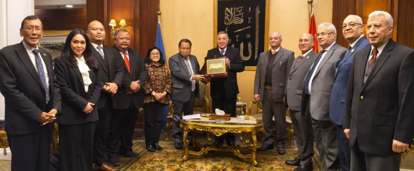 Delegasi MKRI yang dipimpin Hakim Konstitusi Arief Hidayat diterima langsung Presiden Mahkamah Konstitusi Mesir, Boulos Fahmy Iskandar, bersama jajaran pimpinan lembaga tersebut. Dialog yang berlangsung secara mendalam ini mencakup penjajakan kerja sama kelembagaan, dukungan Indonesia terhadap Mesir sebagai tuan rumah World Conference on Constitutional Justice (WCCJ) 2028, serta penguatan pertukaran pengetahuan yudisial.