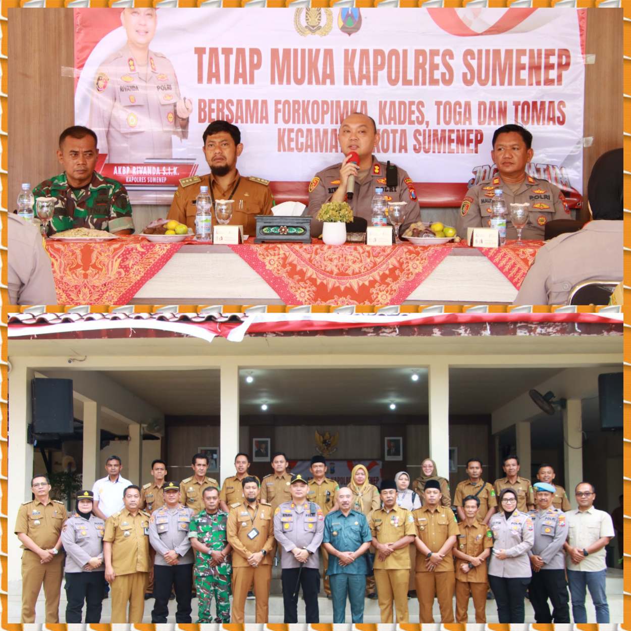 Sumenep-SwaraRakyat.com,- Selasa (30/09/2025), Kapolres Sumenep AKBP Rivanda, S.I.K. melaksanakan tatap muka bersama Forum Koordinasi Pimpinan Kecamatan (Forkopimka), kepala desa, tokoh agama, serta tokoh masyarakat se-Kecamatan Kota Sumenep bertempat di Kantor Kecamatan Kota, Kabupaten Sumenep.