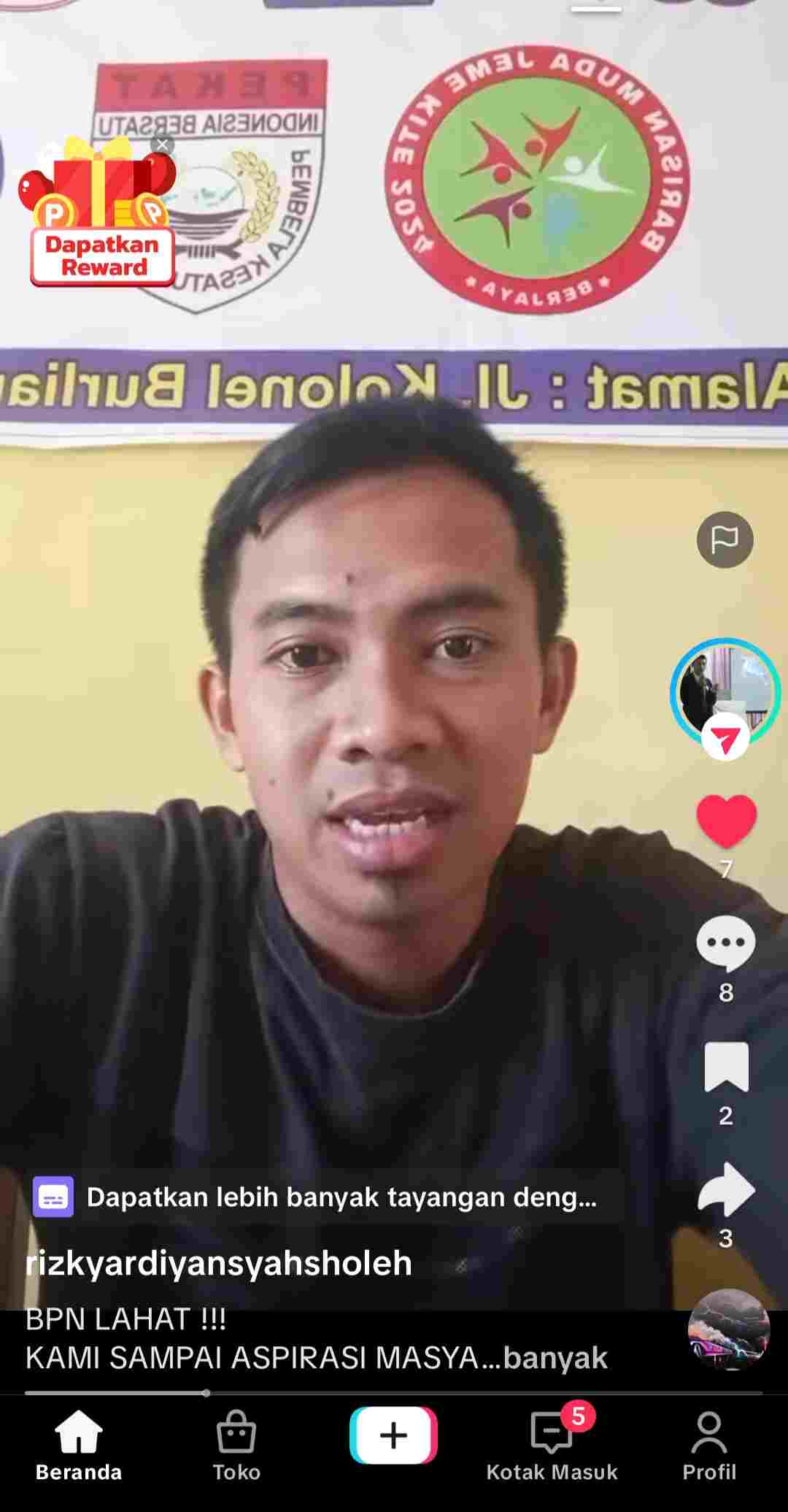 Akun tiktok atas nama Rizky Ardiyansyah Soleh dalam keterangnya menyampaikan keluhan masyarakat dalam mengurus sertifikat tanah.